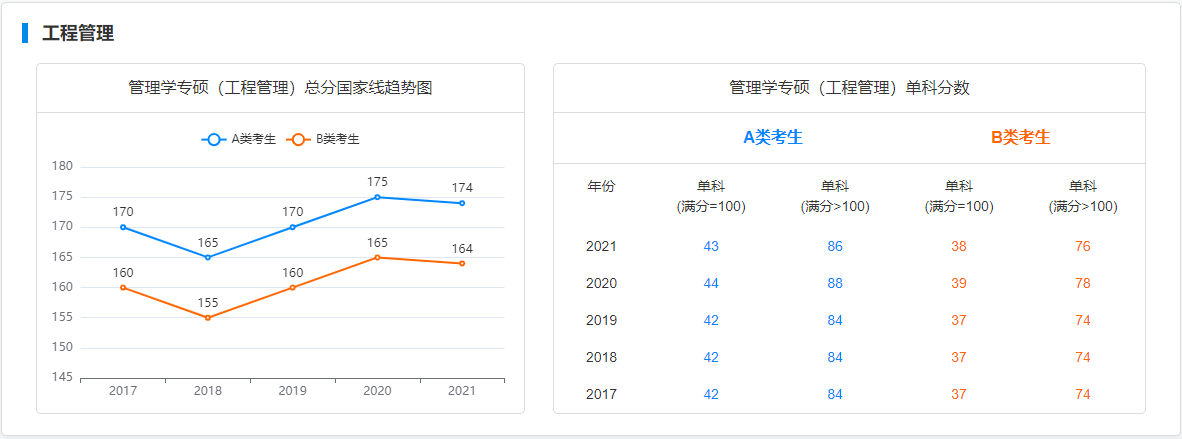 虽然目前国家线还没有公布,但和历年分数线不会有太大的差距。根据分数线走势来看,近五年MBA、MPA和MEM专业国家A线最高175分,B区分数最高170。其实查到分数后,很多管理类联考的同学对于自己是否能上岸心里也有底了?