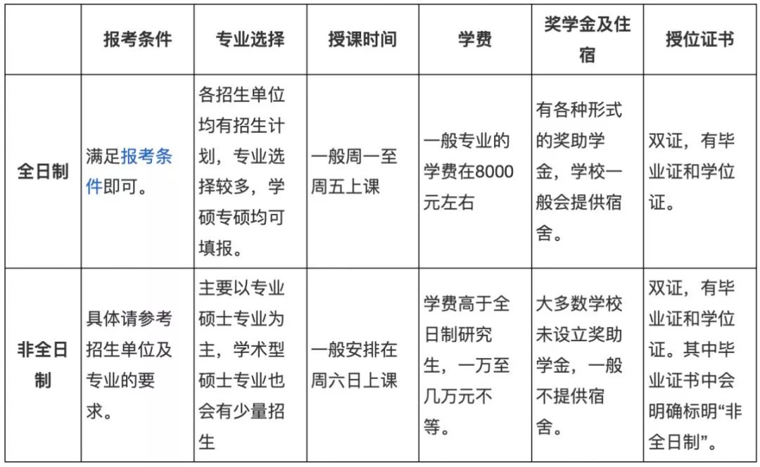 2.培养方案:全日制是脱产学习,全日制授课,提供住宿,户口档案可转入学校;非全日制是非脱产学习,集中上课,学校一般不提供住宿,户口档案不转入学校。