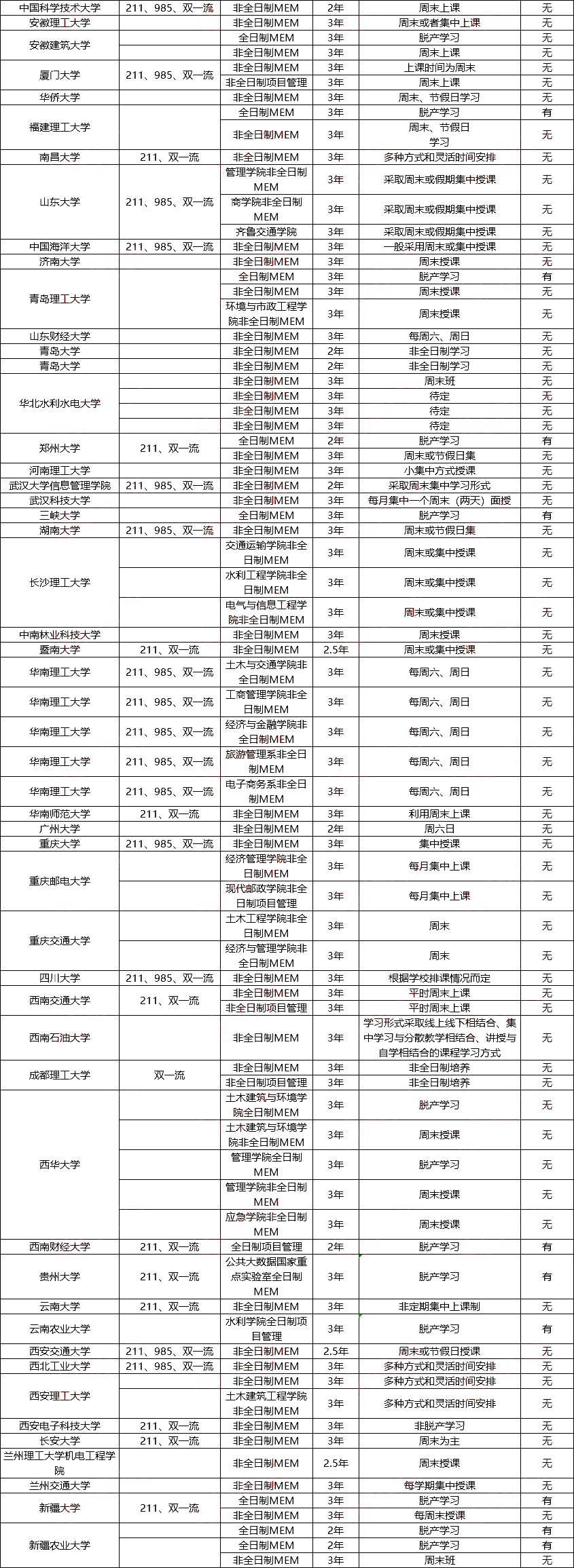 最新汇总!全国MEM院校上课方式!