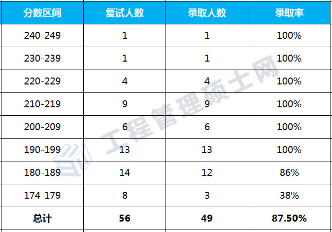一志愿进入复试共计56人,进入复试最高分246分,最低分174分;拟录取49人,拟录取最高分246分,最低分177分,录取率为87.5%。