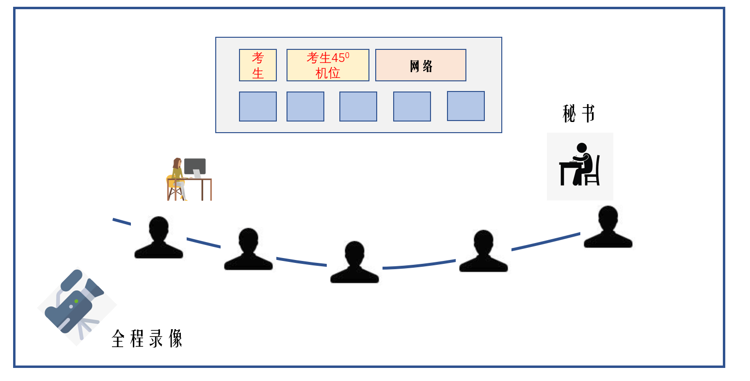 4. 1人为专职网管老师(负责网络技术处理,对考生图像拍照或截屏),1人为专职秘书(负责通知候考学生,录像,复试记录,统计评分)。