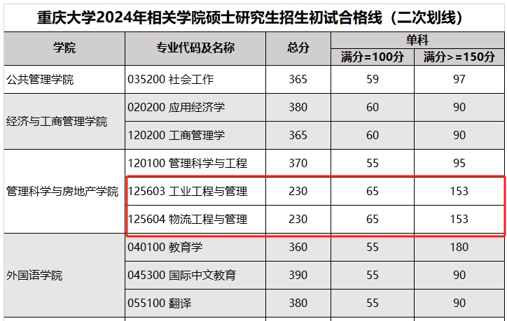 重庆大学2024年全国硕士研究招生考试初试合格基本分数线!