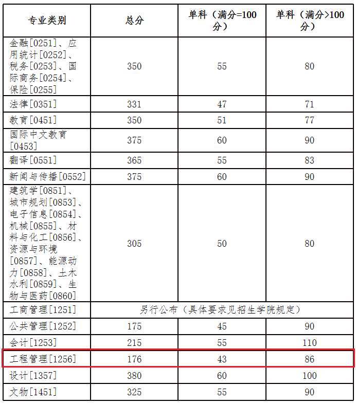 湖南大学2024年MEM工程管理硕士复试分数线