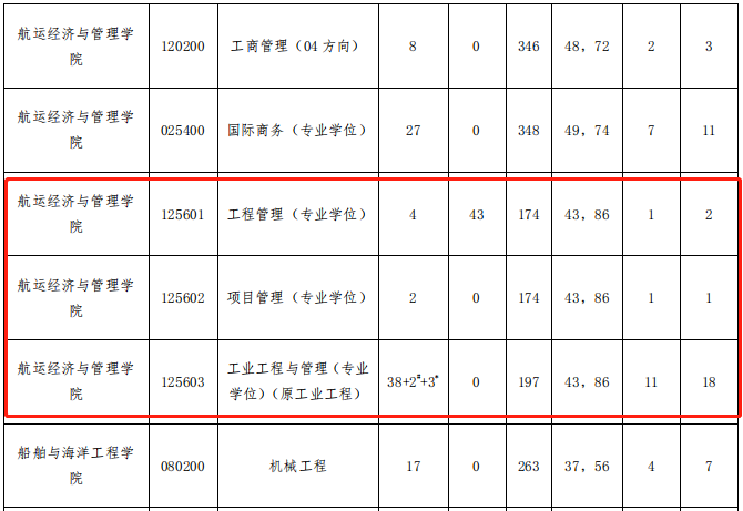 大连海事大学2021年MEM工程管理、项目管理复试分数线:174/86/43;工业工程与管理复试线:197/86/43;物流工程与管理复试线:207/86/43。