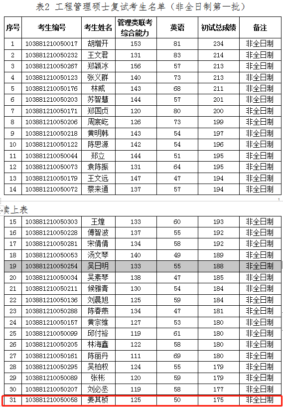 根据《福建工程学院管理学院 2021年硕士研究生招生复试实施细则》,经管理学院研究生复试领导小组审议,我院拟对以下考生进行复试。本批名单不含调剂考生,调剂考生复试名单见后续通知。