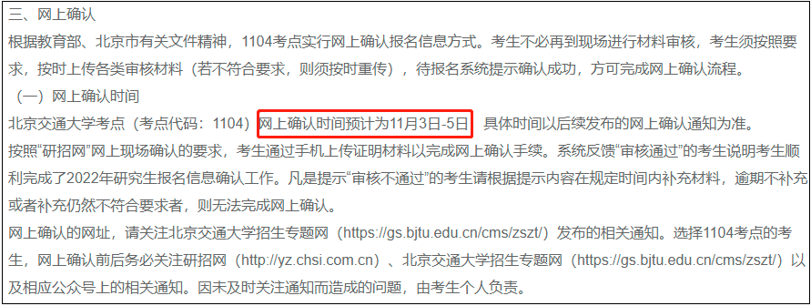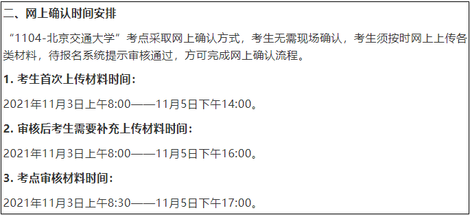 但是北京交通大学报考点网上确认时间为:11月3日-5日,这有这两三天时间!