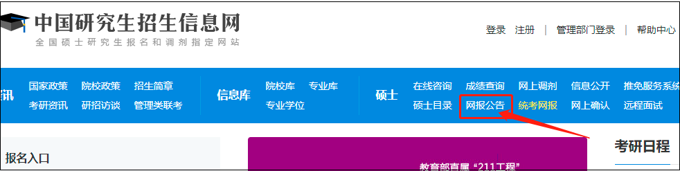 【1】打开研招网,选择网报公告