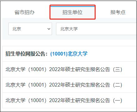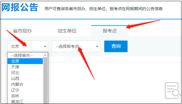 【3】选择招生单位或报考点,网报公告如下所示