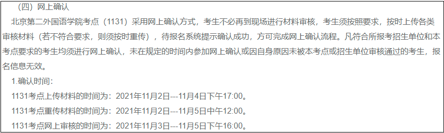 今年的网上确认一般分为三个时间段:上传材料时间、重传材料时间、网上审核时间