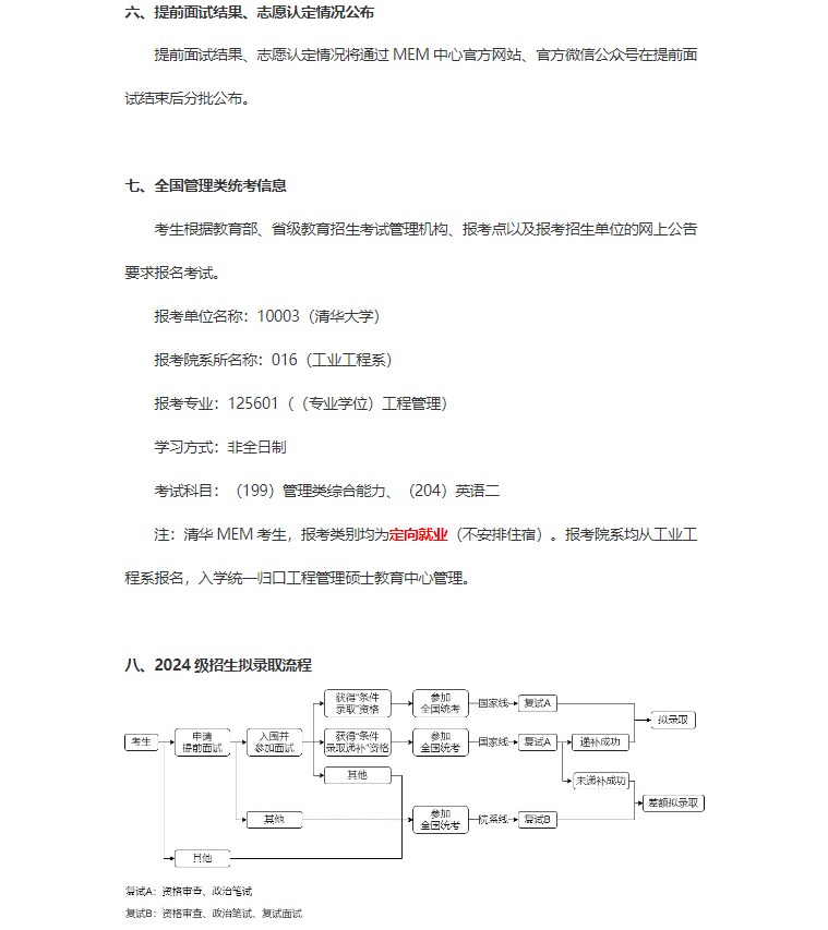 24级清华大学工程管理硕士(MEM)提前面试报考流程