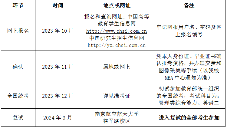 所有报考南航MEM综合考核选拔的考生需参加全国统考,还必须完成以下环节(具体时间以教育部及我校研究生院通知为准):