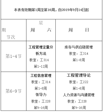 注:1、上课时间从2019年9月14日【第1周周六】起