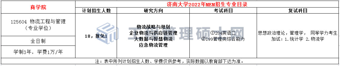 济南大学2022年MEM(125601、125604)招生简章
