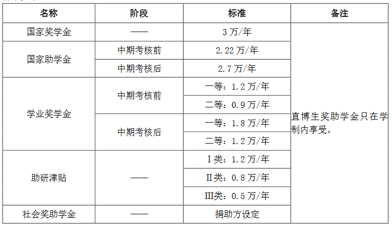 直博生第一年按照硕士生标准发放奖助学金,从第二年开始按照博士标准发放奖助学金,具体标准如下: