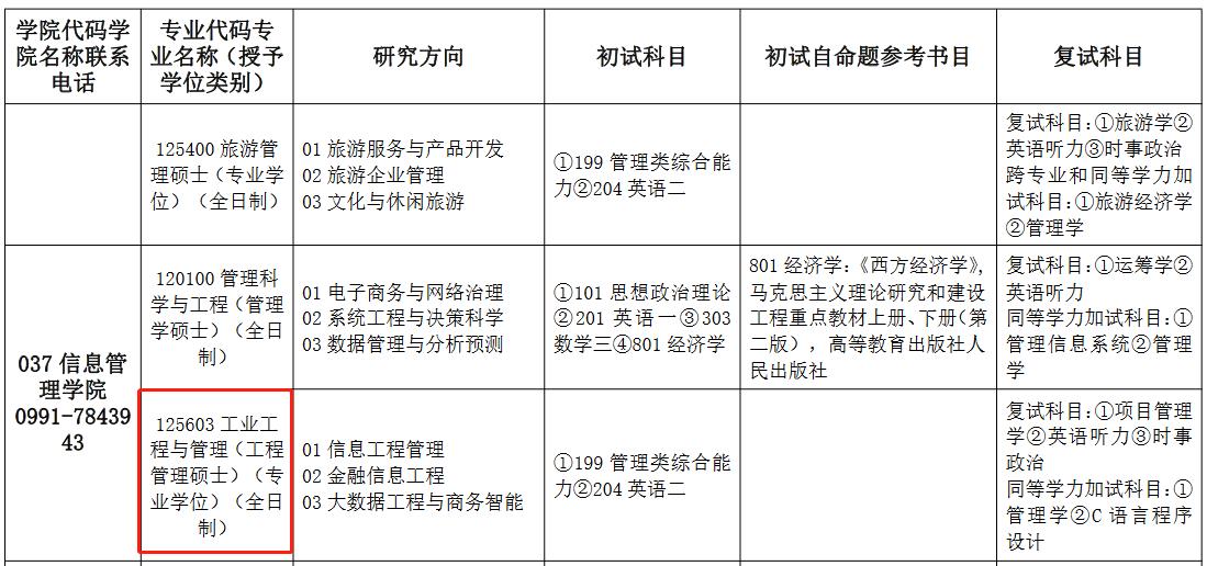 新疆财经大学2023年MEM工业工程与管理招生简章