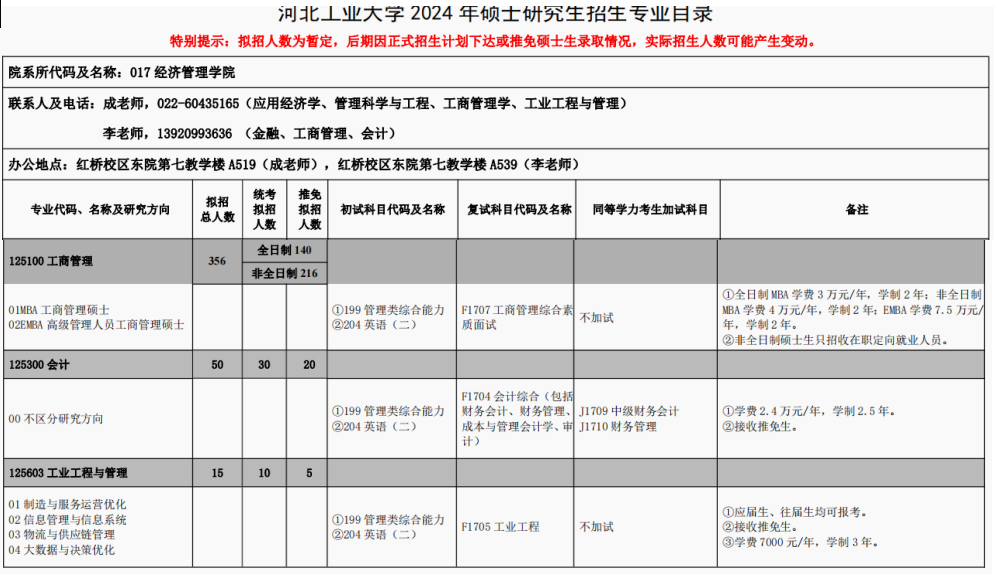 河北工业大学2024年MEM工业工程与管理招生简章