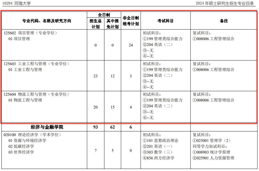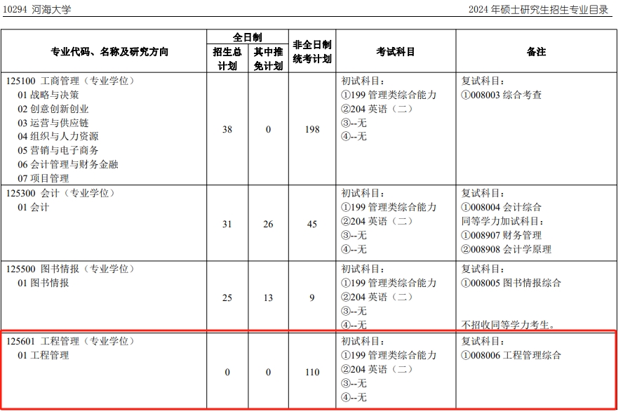 河海大学2024年MEM招生简章(01、02、03、04方向)
