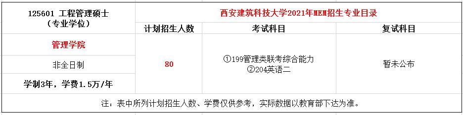 西安建筑科技大学2021年MEM工程管理硕士招生简章