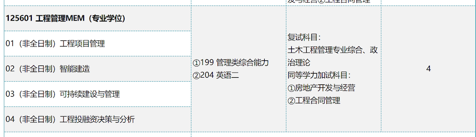 非全日制工程管理硕士计划招生4人,学制3年,学费3万/年