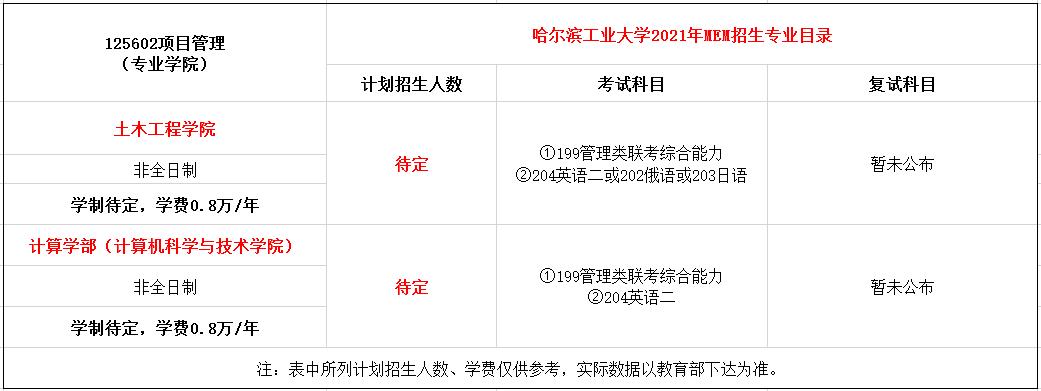 哈尔滨工业大学2021年MEM项目管理硕士招生简章