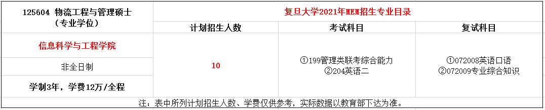 复旦大学2021年MEM(125602、125604)招生简章