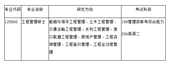 招生领域:包括但不限于船舶与海洋工程、土木工程、交通运输工程、水利工程、港口航道工程管理、房地产、工程咨询、工程造价、工程全过程管理等,以及相关行业。