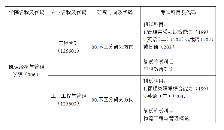 注:2022年招生计划请见《大连海事大学2022年硕士研究生招生章程》(预计9月发布)。2021年非全日制工程管理实际招生人数32人。